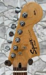 The 2004 Squier Affinity Stratocaster (often made in China/Indonesia, starting with serial prefix IC or CY) features a thin, lightweight Alder or Agathis body, a 25.5" scale maple neck with a "C" shape, and a 9.5"-radius rosewood or maple fretboard with 21 medium-jumbo frets. It commonly has an SSS configuration with 3 ceramic single-coil pickups, a 5-way switch, and a 6-saddle synchronous tremolo bridge.