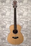 A slim Taylor neck profile and low action ensure a smooth, comfortable playing experience with relaxed fretting. Other notables include Italian acrylic fretboard dot inlays, chrome tuning machines and an ES-B pickup with a built-in digital tuner.