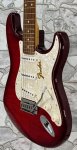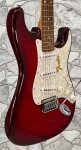 In really nice shape, Includes Hardshell CaseThe 2004 Squier Standard Stratocaster with a transparent finish was a mid-range model, often featuring attractive wood grains (like mahogany or figured maple) under a satin or gloss finish, with options like HSS pickup configurations (Humbucker-Single-Single), Alnico pickups, C-shaped maple necks, and sometimes special features like matching headstocks or quilted tops, offering a significant step up from Squier's Affinity series with quality hardware like a 2-point tremolo. These "Trans Fat" models came in colors such as Transparent Crimson Red, Antique Burst, and Walnut Satin.
