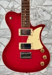 Aesthetics: It has a distinctive, eye-catching, single-cutaway body design with a pickguard and cream-colored binding.