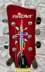 A couple of nicks in the back but great shape otherwise. The First Act ME501 electric guitar is a solid-body instrument known for its quality build for its price point, featuring dual humbucker pickups and a maple neck with a rosewood fingerboard. It offers a classic rock sound and smooth playability, making it popular among beginners and casual musicians.