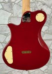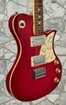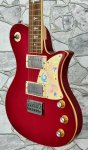 Aesthetics: It has a distinctive, eye-catching, single-cutaway body design with a pickguard and cream-colored binding.